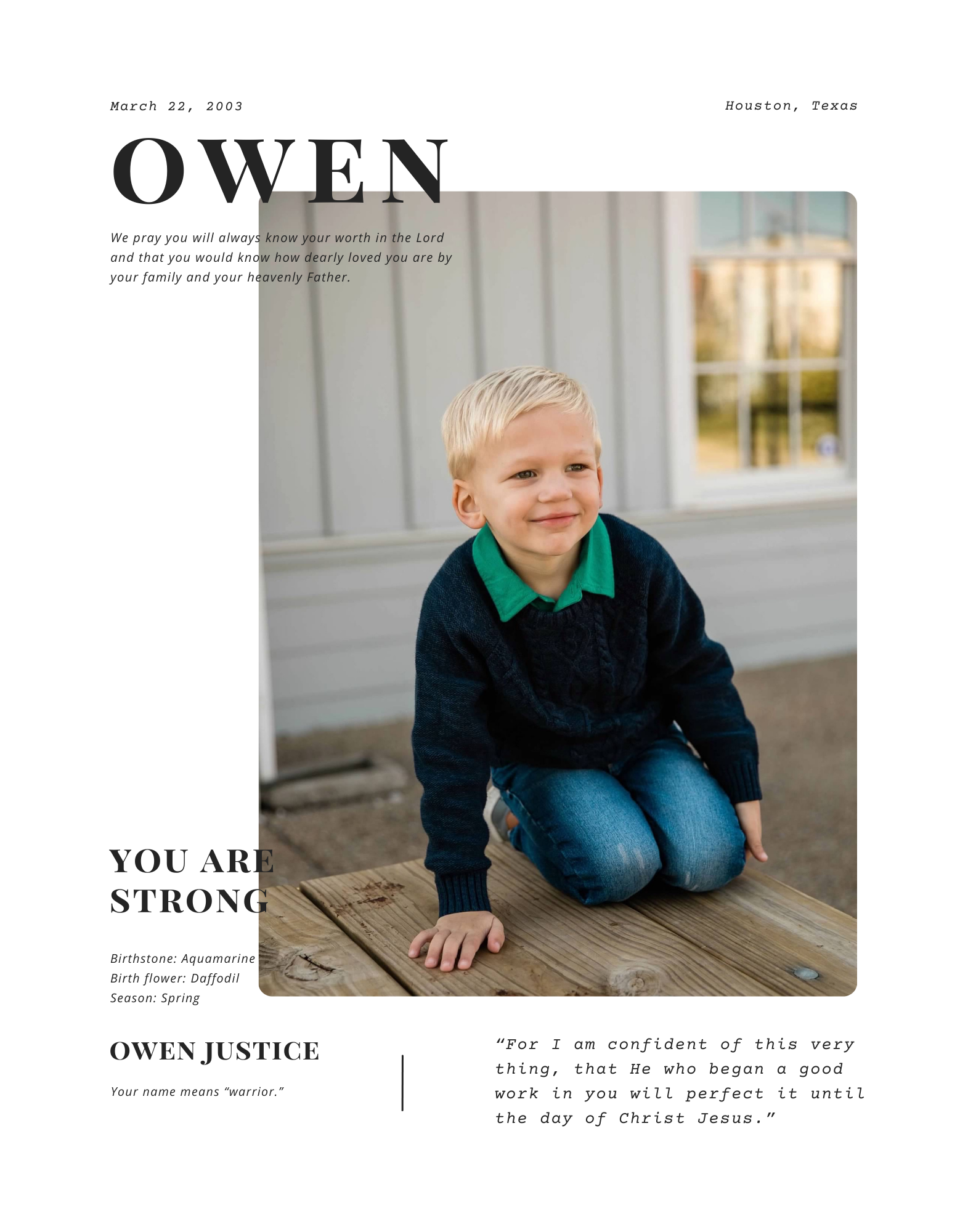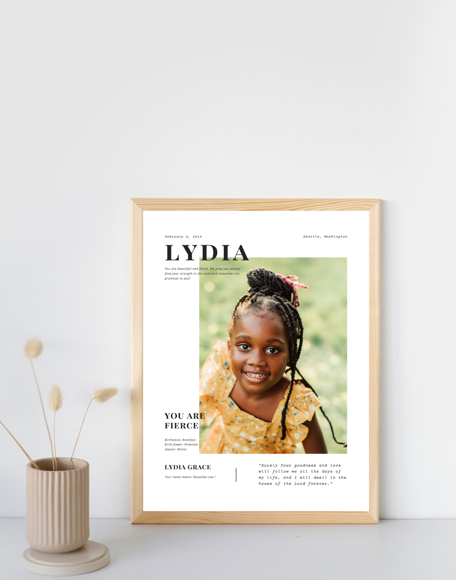 Cherish your loved one with this personalized keepsake print – a heartfelt tribute suitable for any age or stage of life. This elegant, custom print is a beautiful way to preserve a cherished stage in life, making it a thoughtful keepsake for any family. Each print is adored with heartfelt scripture from the Bible and a prayer or declaration over their life.